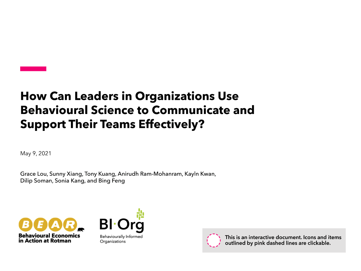 Learning Objective/Description: a playbook to illustrate research findings and deliver the research knowledge to leaders in organizations who are looking to use behavioural science to encourage, motivate, and empower their employees and create a healthy communication culture
