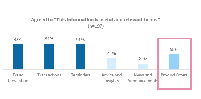 For example, across multiple survey questions, "product offerings" consistently ranked as a close second in terms of relevance and importance. To explain this finding, I referenced a previous UX research study where users responded positively to personalized messages with clear recommended actions requiring minimal effort. Using the channel factors principle, I emphasized how simplifying users’ decision-making by providing clear next steps reduces cognitive burden. This, in turn, enhances the relevance of communication and drives higher engagement.